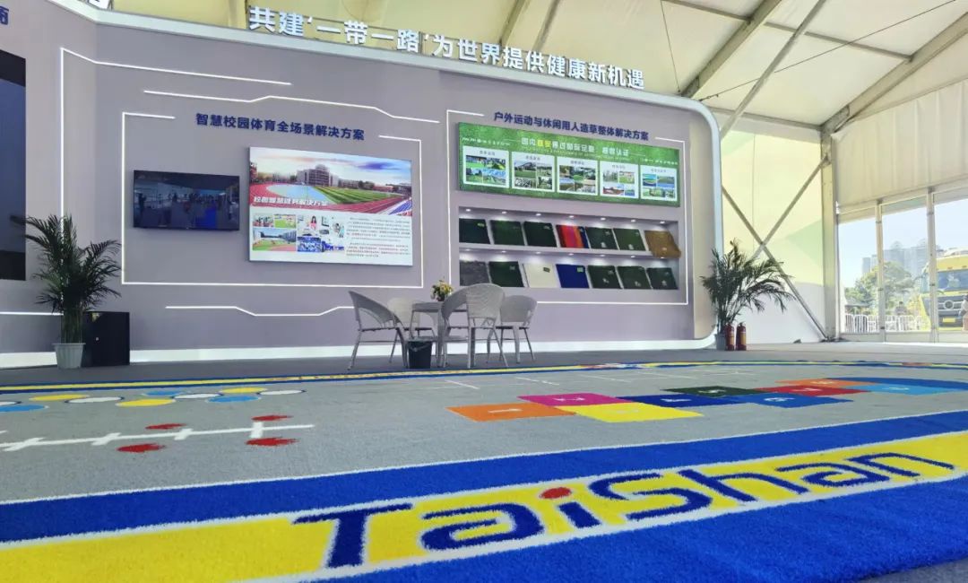 8866体育携户外运动与休闲人造草整体解决方案亮相会场。作为国内首家通过足联、曲联双认证的企业可根据不同用户的户外运动需求,生产多种类型的户外运动草坪。
