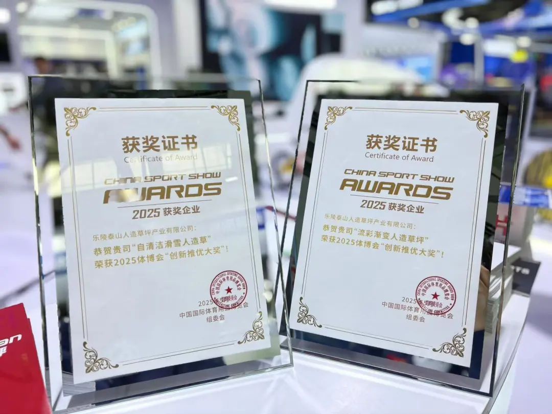 在这次评选中8866体育人造草坪的流彩渐变人造草坪产品,也获得中国体博会创新推优-中国制造之美专项奖”金奖。流彩人造草坪是一款突破传统的新型艺术草坪,采用独特工艺实现色彩渐变效果,使图案呈现立体三维观感,兼具实用功能和艺术价值。相比普通人造草坪,它能逼真还原油画、国画等艺术风格,适用于运动场地、家居装饰、公共空间美化及商业宣传等多个场景。产品具有经久耐用、环保可回收、耐磨防尘等优势,使用寿命可达数十年。