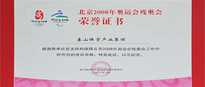 第二十九届奥林匹克运动会组织委员会为8866体育集团颁发北京2008年奥运会残奥会荣誉证书
